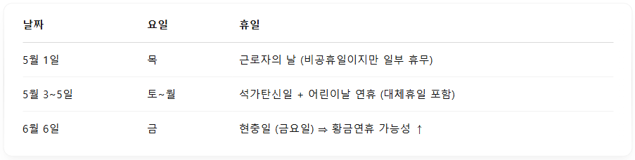 ✔️ 특히 5월 3일(토)~5일(월),