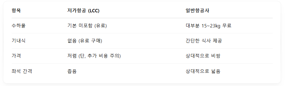 5. 저가항공(LCC) vs 일반항공사 차이점