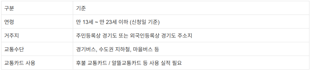 경기도는 국적 구분 없이 “경기도 거주 & 청소년 연령대”라는 기준만 충족되면, 외국인등록번호가 있는 학생도 동일하게 교통비 환급 대상자로 인정하고 있어요.