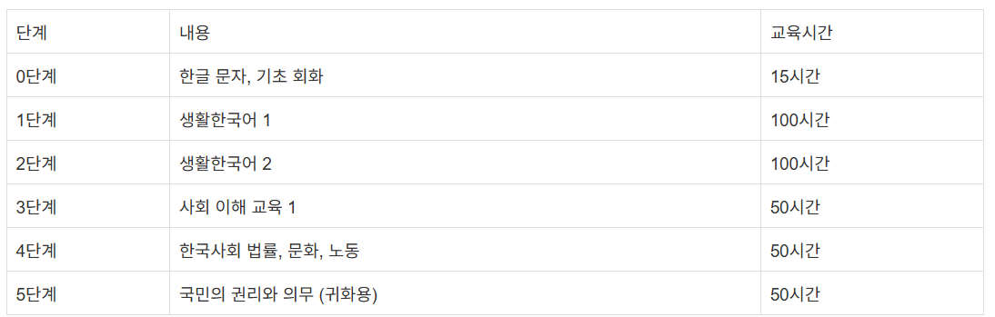 각 단계 종료 시 평가(Test) 있으며 수료증 발급 → 영주권, 귀화 심사 시 ‘가점’ 부여됩니다.